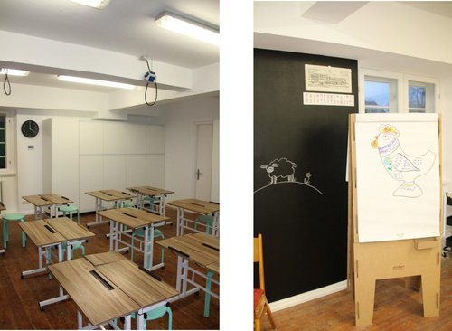 - aufgrund der offenen, adaptiven Raumgestaltung kann der Bereich von verschiedenen Akteuren für unterschiedliche Zwecke (außerschulische Projekte, Sitzungen, Workshops, Tagungen, kreativ-kulturelle Treffen) genutzt werden; so werden nebenbei Möglichkeiten des Kennenlernens und der Vernetzung initiiert